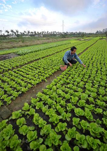2月4日,一位农民在海口市郊的一片白菜地里劳作。当日是二十四节气中的立春,也是海南冬季瓜菜种植、收获最繁忙的时节,菜农们抓紧时间在田地里辛勤劳作。新华社记者 郭程 摄