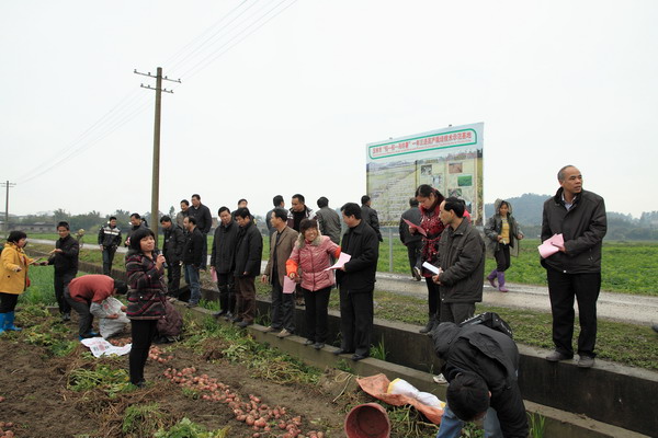 在城西街道永上村连片1000亩冬种马铃薯生产基地,玉州区农业局有关领导向前来参观的与会人员介绍了冬种马铃薯的生产管理情况。玉州区城西街道永上村冬种马铃薯生产基地是玉州区连片规模最大、种植时间最长、效益最好的生产基地之一。该基地2004年开始种植,从几十亩发展到今年的1000多亩,特别是从2009年引种超级稻早熟品种甬优6号后,对早收早种、早上市、高价格起到了更大的作用,农民冬种马铃薯的积极性进一步提高,去年种植面积达到700多亩,平均产量2346公斤,高产的田块达3012公斤,平均价格每市斤在1元以上,取得了较高的经济效益。该基地的特点是一家一户经营、集约化连片规模种植。其措施是:一是选用良种。全部种植优质脱毒品种“合作88”。二是季节早、抢种及时。去年10月24日到29日全部完成种植任务。三是采用大畦稻草覆盖栽培技术种植,施足基肥,科学追肥,及时中耕培土。四是科学用水。播种时至出苗前土壤始终保持湿润,遇到干旱应通过畦沟及时灌水,禁止大水漫灌,出苗后,通过沟灌稍为加大田间湿度,使土壤持水量达到田间最大持水量的70%左右,从现蕾以后至收获前10天,保持田间湿润,使土壤含水量达到最大持水量的80%左右。结薯后期雨水较多,注重排水防渍,防止湿度过大,造成烂薯,收获前10天排干田间渍水,防止烂薯,增强产品贮性。五是加强病虫防控。根据马铃薯易随不良天气变化发生病害的特点,在天气冷暖交替时,用克露、多菌灵、72%农用链霉素+比虫啉防病灭虫,并结合叶面肥喷施,增强植株的抗病力,确保马铃薯高产优质。