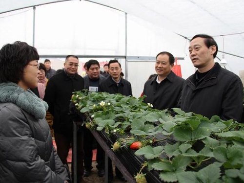 2月1日,省委常委、副省长余欣荣在省委常委、合肥市委书记吴存荣,省气象局于波局长和省农委负责人的陪同下来到合肥市调研农业工作。调研中,余欣荣副省长深入田间地头,仔细查看了部级万亩小麦高产攻关示范片区小麦生长和病虫害防治情况,要求有关负责人,要密切关注雨情、苗情,采取对应措施;利用科学技术,做好预防病虫害工作,确保小麦产量保持较高水平。在合肥市艳九天农业科技有限公司、长丰县部级草莓标准园,余欣荣副省长深入草莓大棚,深入了解草莓种植和销售情况。在听取相关汇报后,余欣荣强调,长丰草莓是我省重要的农产品品牌,有着较高的社会关注度和品牌知名度。下一步,要在生产环节继续引进新的优质品种,加强草莓病毒脱除和高效益栽培技术研究,通过应用脱毒种苗,提高生态效益,培育出更多新鲜健康、香甜可口的优质草莓;在流通环节,要做好分级包装,促进草莓销售的多元化、多样化和多层化,提升草莓的商业价值,同时要加大对农户的引导和奖励力度,提高草莓种植户的积极性,从而增加农民收入;要加强草莓规模化种植、标准化生产和产业化经营,提升大棚草莓的生产能力和市场竞争力,扩大对外出口,提升经济效益。