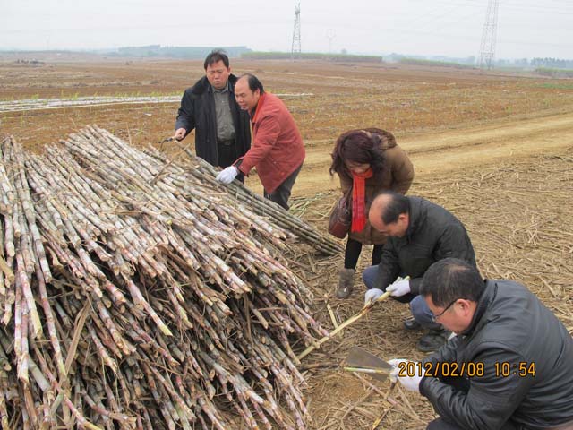 为亲自摸清甘蔗螟虫越冬虫口基数, 2月8日,自治区植保总站王凯学站长带领技术人员到武鸣县调查甘蔗螟虫越冬情况和研讨释放赤眼蜂防控螟虫项目有关事宜,在当地植保站颜文好站长及技术人员的陪同下,与项目合作单位广西南宁合一生物防治技术有限公司师翱翔博士等,一同深入仙湖镇苏梁村等地实地调查,重点对宿根蔗头、秋笋、留种蔗茎、枯株进行调查。