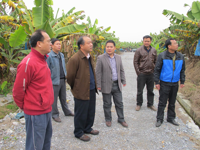 梁书记(左三)在田东县祥周镇百渡村香蕉园检查指导