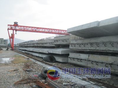 施工工地上整齐地排列着预制好的底板和挡浪板。