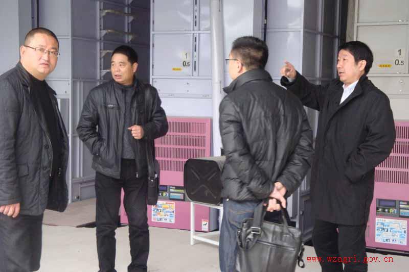 2月9日温州市农机处全岳明处长率验收组到永嘉县验收农业机械化促进工程项目,县农业局汤志远副局长、农机管理站人员陪同。