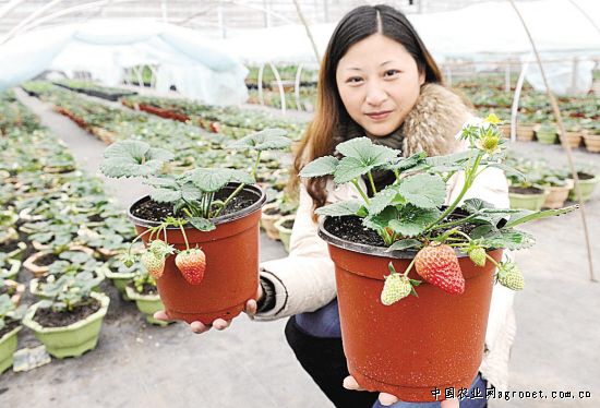 昨天,一种集食用和观赏为一体的盆栽草莓亮相镇江瑞京园。据了解,这种盆栽草莓是瑞京园和培蕾公司利用无土栽培技术培育的。盆栽草莓不仅可让市民品尝到可口的草莓,而且可让市民体验种植的快乐。