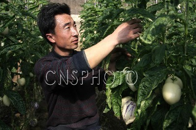 2月16日,年收入10多万元的民勤县大坝乡六沟村农民朱有瑜在大棚内为人参果掐秧。
