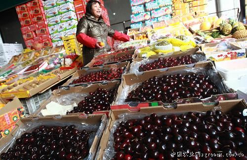 2月19日,上海进出口检验检疫局的工作人员在上海农产品中心批发市场内查验进口水果。近日,记者在上海农产品中心批发市场了解到,今年以来,进入上海市场的进口水果的总量大幅增加,在上海农产品中心批发市场,进口水果的平均价格较去年同期下降近30%,樱桃、猕猴桃等品种售价仅为去年同期的一半。
