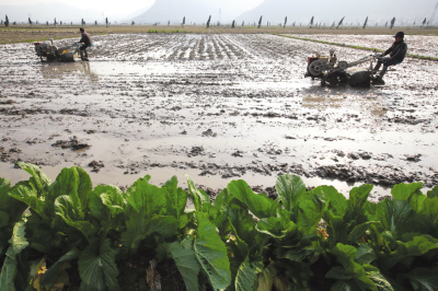 “一年之计在于春”。昨日,马屿镇金穗水稻合作社的社员高邦舜等在翻耕水稻秧田,为岳二村农民900多亩早稻播种作准备。