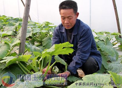 2月19日,笔者看到,清港镇?心村菜农杨德才正在大棚里观察西葫芦长势情况。