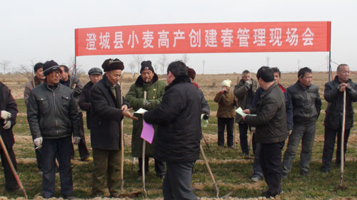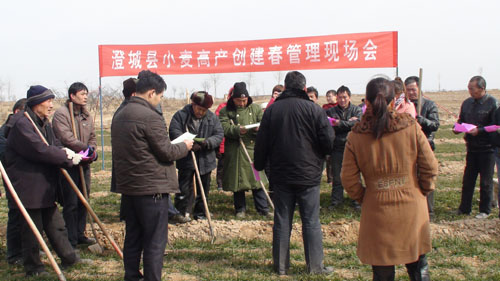 2012年2月17日,立春刚过,澄城县农技中心根据当前麦田小麦生长情况,提早动手,组织群众召开澄城县小麦高产创建春季管理现场会。