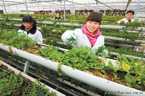 近日,工作人员在盐土大地农业科技园内采摘海水蔬菜。