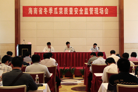 会上,陵水、三亚、乐东3市县作了表态发言。会前,与会人员参观了陵水县大潜洋万亩圣女果生产基地和光坡镇收购点检测现场。