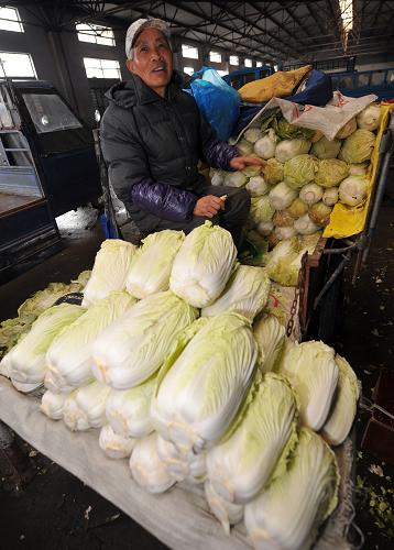 由于大白菜量少价高,他舍不得卖给收购商,而是选择自己卖菜。