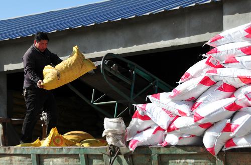 目前内蒙古各地春耕备耕工作全面展开,农业等相关部门突出抓好种子、肥料、农药、农膜、农机具等春耕物资的调剂和调运,保障农民春耕生产需求。新华社记者 李云平 摄
