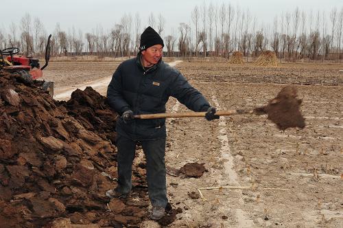3月2日,内蒙古巴彦淖尔市临河区干召庙镇农民在地里施肥。
