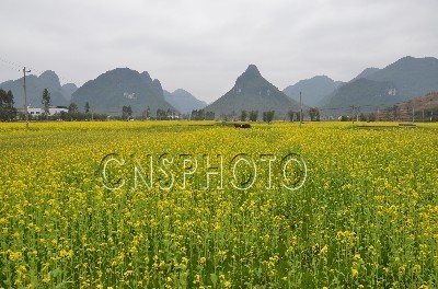 2012年3月5日,广西罗城仫佬族自治县四把镇石门村的油菜花盛放。去年冬种,罗城政府出资购买种子,号召群众在公路沿线田间地头种油菜。目前,全县万亩油菜花已竞相开放。