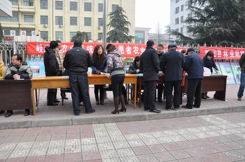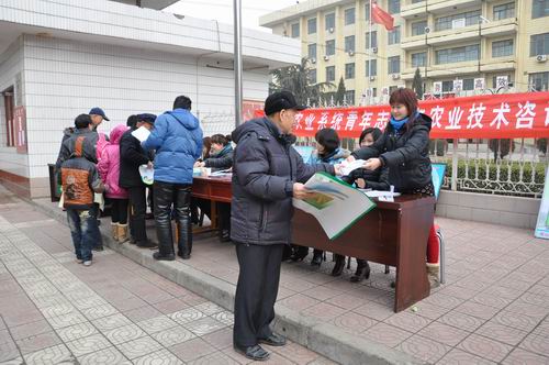 3月5日,借助学雷锋纪念日宣传活动的东风,岐山县农业局精心准备,组织县农经站、种子管理站、畜牧站、农技中心、桑果站、猕猴桃中心等几家单位在县委、县政府门前广场开展了岐山县农业系统青年志愿者农业技术咨询服务宣传活动,大力宣传农业实用技术、农产品加工、农民专业合作社及农村土地流转等农业知识。整个活动现场热闹非凡,各家单位都设立了展牌,悬挂了条幅。标准化生产、畜产品防疫技术、农产品实用技术等图文并茂的展示图版前站满了前来观看的群众。志愿者现场向前来咨询知识的群众发放宣传资料5000余份,并进行耐心、认真的讲解。此次活动受到了群众的普遍好评。当日,其他系统有关单位也参加了本次活动。