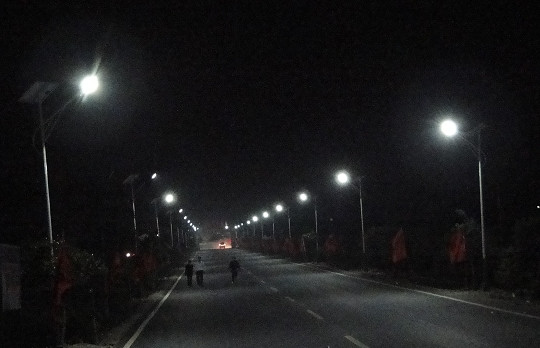 在上级有关部门大力支持下,国家级生态农业旅游示范村――北流罗政村在龙年春节前安装的86套太阳能路灯,已全部正常投入使用,标志着该村的社会主义新农村建设又向前迈出一大步。夜幕降临,华灯齐明,村民们在路灯下闲庭信步或娱乐休闲,展现出罗政村的宁静与和谐之美,更让村民增添幸福感与自豪感。村民们都说:太阳能路灯真好,不仅节约电能、减少开支,而且晚上自动开灯、白天自动关灯,根本不用人管理,非常方便。