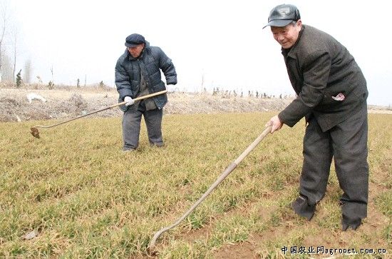 俗话说“春雨贵如油”,乳山连续几天的降雨对小麦生长非常有利。雨后,农民抓紧时机划锄小麦以保墒增温。图为3月6日海阳所镇海阳所村农民在划锄小麦。