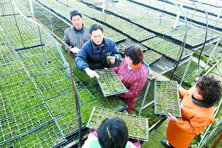 3月12日,西峡县冕昊种植专业合作社技术人员正在组织培育猕猴桃苗。该社今年培育猕猴桃苗300万株,已成为全国最大的猕猴桃育苗基地。记者 王天定 摄
