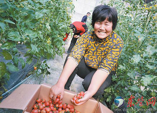 日前,在山东省利津县盐窝镇志强合作社基地内,社员们正在收获樱桃西红柿。该镇针对蔬菜种植品种杂、科技含量低、市场竞争力不强的实际,通过采用无土栽培,引进樱桃西红柿等新品种,促进菜农增收。