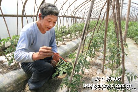 在高塘无公害蔬菜基地,记者看到很多菜农正在给茄子点花、给西红柿搭架子、给黄瓜绑藤,这些夏季成熟的瓜果类蔬菜此刻正处于快速成长期。而部分年前种下的西红柿由于受到之前连日阴雨影响,个头稍微小一点,目前也已经上市。菜农范义华告诉记者,由于种得早,他两个大棚的西红柿早在年前就上市了,现在已经差不多要下市了。不过由于之前连日阴雨,产量不是很高。隔壁两个棚的西红柿还有半个月就能上市,恰好接上。范师傅自从种起大棚蔬菜,就有了这样一个体会,大棚蔬菜种植时间可以选择的余地大,避开集中上市期,就能卖个好价钱。这不,还有一个棚的西红柿才刚刚开花,正需要点花,预计七八月份能上市。