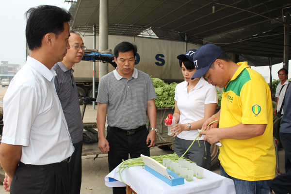 4月26日,合浦县农业局领导杨真荣、梁华带领农业执法人员来到石湾镇东江村田间地头及豇豆收购点检查豇豆生产、市场销售流通情况。