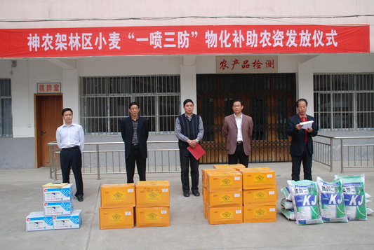 为支持春季农业生产,提高农业防灾减灾能力,经农业部门积极争取,省财政近期下达专项资金对我区小麦“一喷三防”给予补助,补助标准为每亩补助5元,补贴方式为物化补贴。为贯彻落实好这项补贴政策,确保小麦生长安全,最大限度降低病虫害损失,正值小麦扬花孕穗和防治病虫害的关键时期,林区农林局、财政局联合下发了《小麦“一喷三防”补助政策实施方案》,成立了领导小组和工作专班,以竞标报价方式采购农资1.65吨,于4月28日举行了全区小麦“一喷三防”物化补助农资发放仪式。这次小麦“一喷三防”将惠及全区6000亩小麦田块,对我区小麦后期的生长和产量形成发挥重要作用。