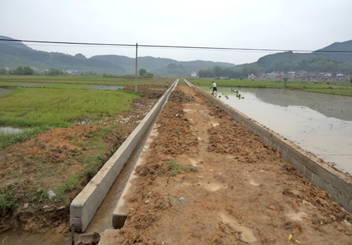 义洞水库灌区总长32公里的干渠,担负着源头镇九洞村委1000亩水田和500亩水果的灌溉任务,由于水流冲刷、侵袭等原因,造成渠面杂草丛生,有些地方滑坡、塌陷,致使渠道存在许多的安全隐患,严重影响水渠的正常运行和水的利用率,当地群众反应强烈。源头镇对干渠进行了大规模的维修和改造,对干渠进行三面光硬化,清淤维修补漏。已完成了8公里主干渠三面光改造,14公里主干渠清淤补漏维修。