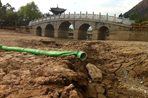 5月10日,丽江市著名景区黑龙潭公园干涸见底,曾经的供水工程停止运行。