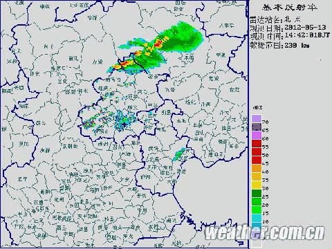 今天(13日)北京全天有阴天到多云为主,风力较大。下午2点30分左右,北京北部郊区上空开始出现从河北移入的对流性降雨云团,一直到16时30分前后,回波呈现向南缓慢移动趋势。目前,延庆东部、密云中部地区有回波30-45dbz的雷达回波,伴随中等强度的对流性降雨。
