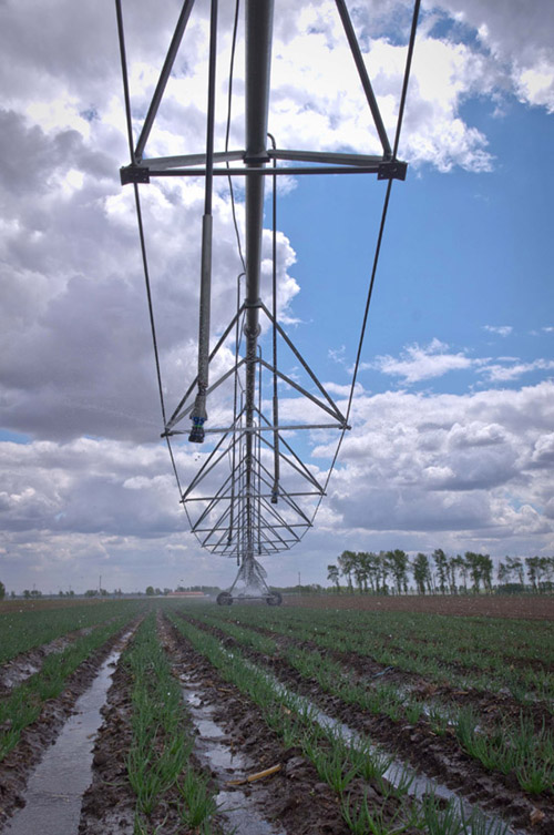 这是吉林省农安县哈拉海镇境内的指针式喷灌机(5月15日摄)。