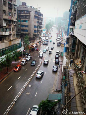 21日上午,贵阳市区降大雨(图片来源:新浪微博)