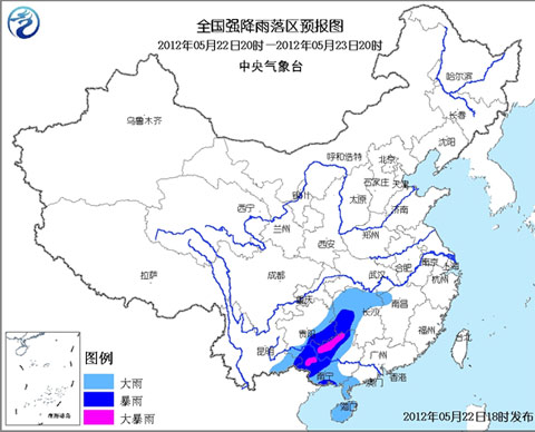 中央气象台5月22日18时继续发布暴雨蓝色预警:
