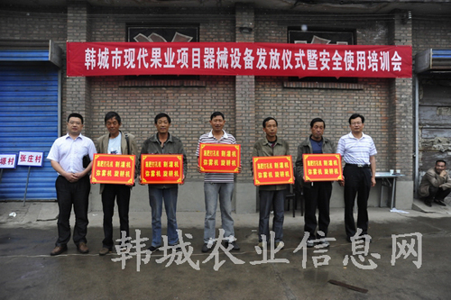 5月21日,韩城市农业局在芝阳镇为涉及现代果业项目的7个村免费发放旋耕机、弥雾机、打孔机等设备,进一步提升了果农的作业水平,减轻农业灾害,提高果业生产效益。在发放仪式上,农业技术人员就各种器械的使用方法和注意事项对果农进行了现场培训。