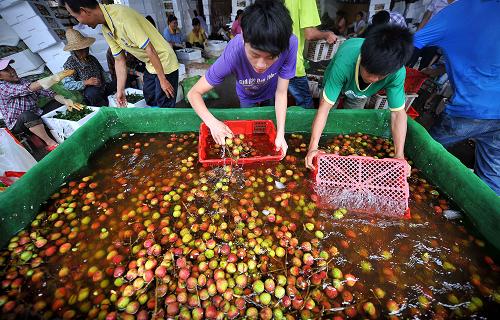 近期,海南荔枝进入上市高峰期,价格也持续走俏,每公斤收购价格在4至8元左右。据了解,海南省今年全省荔枝种植面积约35万亩,预计总产量16万吨。新华社记者 郭程 摄