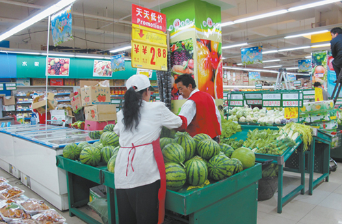 3日,记者从拉萨市区部分超市和批发市场了解到,本地西瓜大量上市,每斤价格降了2元多。