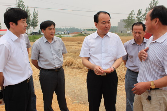现场会上,4台联合收割机忙碌地收割着金黄色的小麦。唐庆明捧着刚收割的麦粒详细询问了农机具调度、小麦收成等情况,要求农机部门和乡镇政府积极有序地调度收割机械,做好抢收工作,确保颗粒归仓;扎实做好秸秆禁烧工作;引导群众做好抢种工作,确保不误农时。