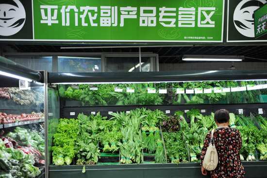为了平抑物价,保障城市居民日常需求,从6月起,宁夏回族自治区银川市首批农副产品平价商店开始试运行。平价商店销售的蔬菜价格低于当地农贸市场和超市平均零售价的15%;粮、油、肉、禽、蛋及其他生活必需品价格低于当地同类市场均价5%以上。首批试运行的平价商店吸引了众多市民前往选购。