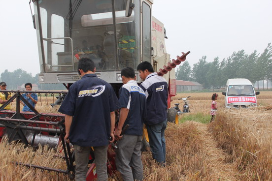 5点25分,灵璧县农机抢收、维修服务小分队协同“三包”服务技术人员赶到了事发现场,并立即对故障收割机展开了检查和维修。20分钟后,故障排除了,轰隆隆的机声又重新响起,机手满是灰尘和汗水的脸上又绽放了笑容。