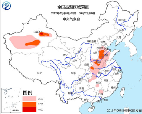 中央气象台6月20日06时继续发布高温蓝色预警: