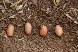 扒开播后的土层可以看到,一粒粒种子整齐地点播在5厘米深处的种沟中,粒距均匀,深度一致,完好无损。在种子侧下5厘米深处,则会看到播撒在土壤里的种肥。