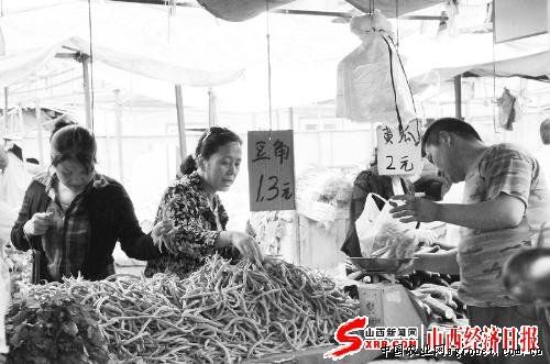 7月5日,省城解放路综合集贸市场内,市民在购买蔬菜。近期,受我省及周边省份持续阴雨天气影响,太原市部分蔬菜价格出现小幅上涨。