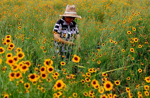 近日,安徽省黄山市休宁县农业基地育苗移栽种植的昆仑雪菊喜获丰收,工作人员开始进行采摘。