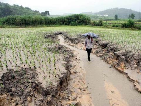 强降雨导致都昌县多宝乡帅建山村爆发山洪,当地大量农田被泥沙覆盖,各种农作物被冲毁,部分山体滑坡,村民房屋积水。