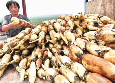 近日,国家级巢湖湿地农业综合利用示范区黄麓莲藕示范片里荷香四溢,工人们将刚采收的鲜藕装车外销