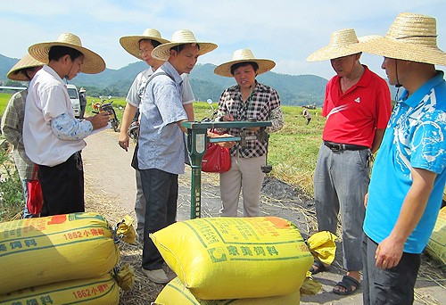 7月16日,受农业厅委托,玉林市农委组织专家组对兴业县承担实施的农业部万亩水稻高产创建示范区进行测产验收,经验收组人员现场测产,示范片亩产干谷526.7公斤,超出农业部制定的亩产500公斤干谷的目标产量,水稻万亩高产示范项目取得成功。