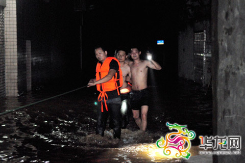 7月24日凌晨3时,被困滨江路的市民被救上岸。通讯员杨华摄