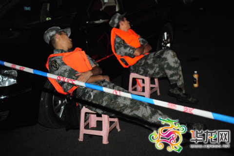 连续数十小时奋战的抢险人员,轮替简单小憩。通讯员杨华摄