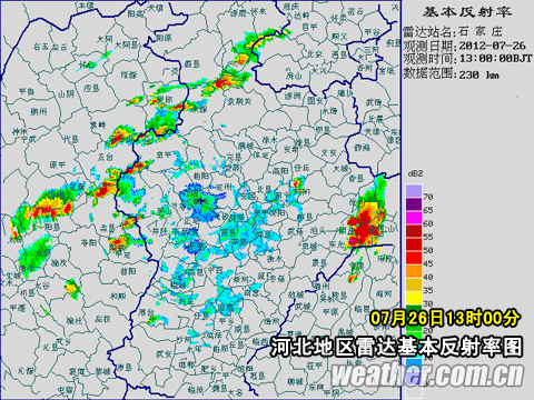 26日13时至14时河北地区雷达回波