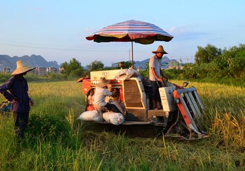 今年来,宜州市克服春季长期低温阴雨天气影响,大力开展水稻防寒育秧和“多播一斤种、增收百斤粮”等良种良法,并实施早稻超级稻高产示范片6个,辐射带动全市粮食丰收。据了解,宜州市早稻种植18.9万亩,预计平均亩产干谷450公斤以上。图为庆远镇宜畔村鹏岭屯农民在收割早稻。